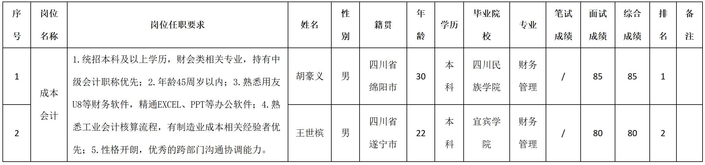 根據(jù)四川安和精密電子電器股份有限公司發(fā)布的招聘公告及招聘相關(guān)規(guī)定,經(jīng)筆試、面試等程序,現(xiàn)將筆試(面試)成績(jī)予以公示。