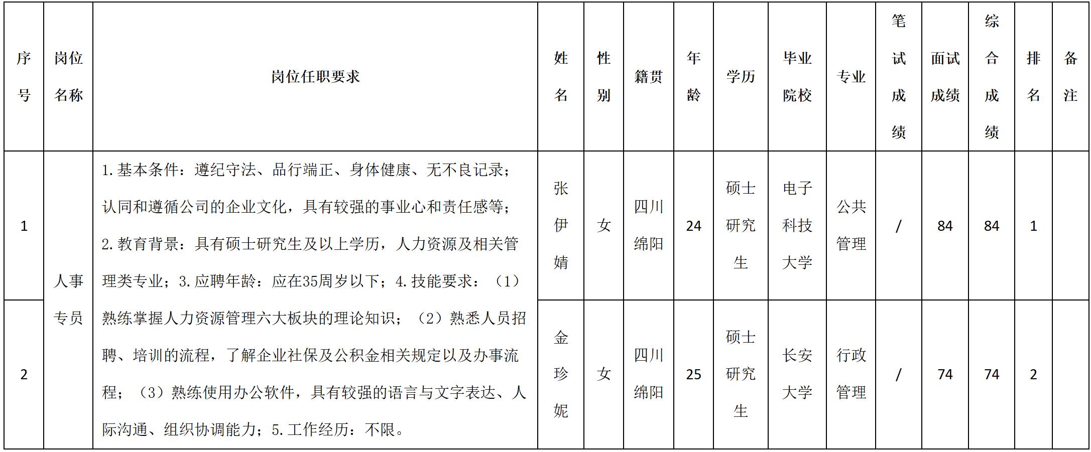 根據(jù)四川湖山電器股份有限公司發(fā)布的招聘公告及招聘相關(guān)規(guī)定,經(jīng)筆試、面試等程序,現(xiàn)將筆試(面試)成績予以公示。