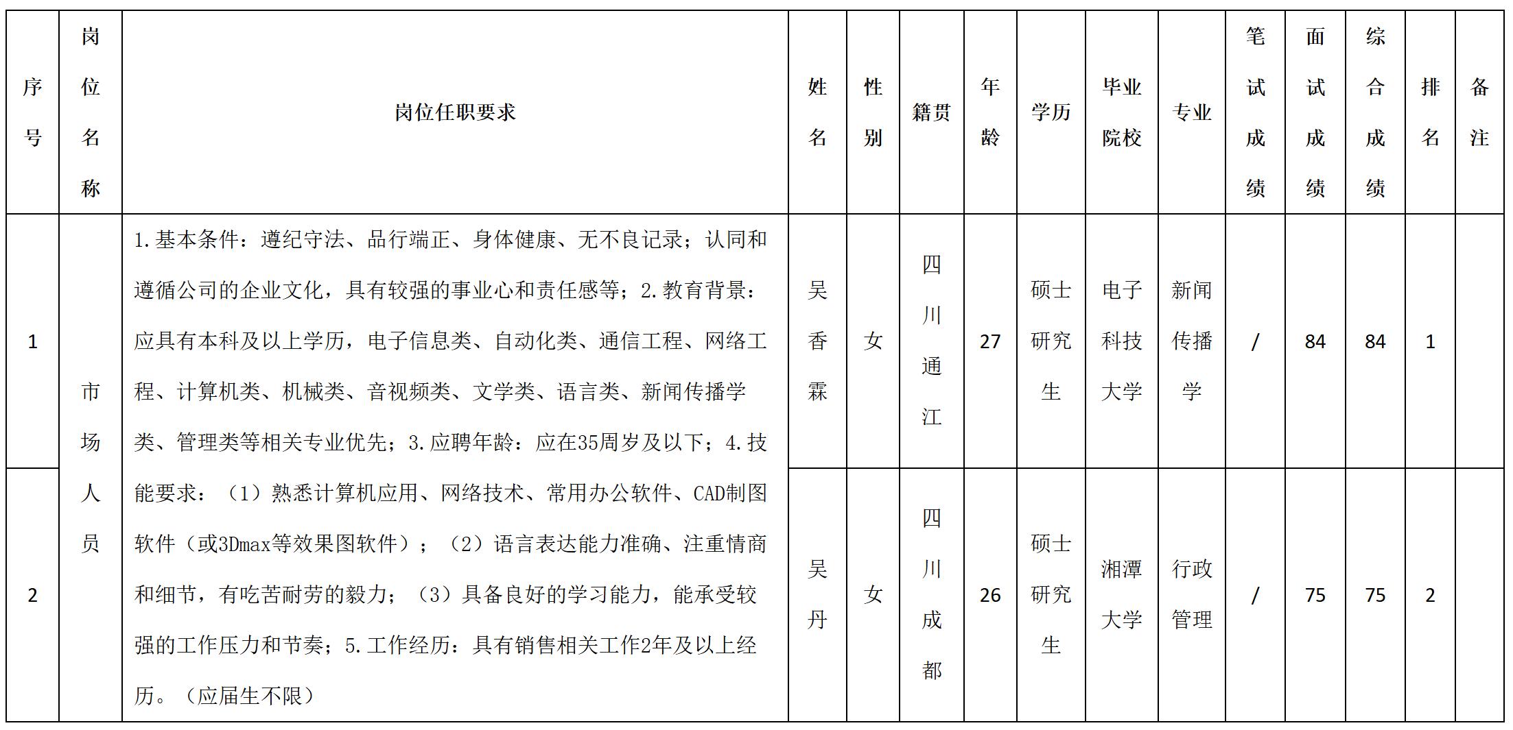 根據(jù)四川湖山電器股份有限公司發(fā)布的招聘公告及招聘相關(guān)規(guī)定,經(jīng)筆試、面試等程序,現(xiàn)將筆試(面試)成績(jī)予以公示。