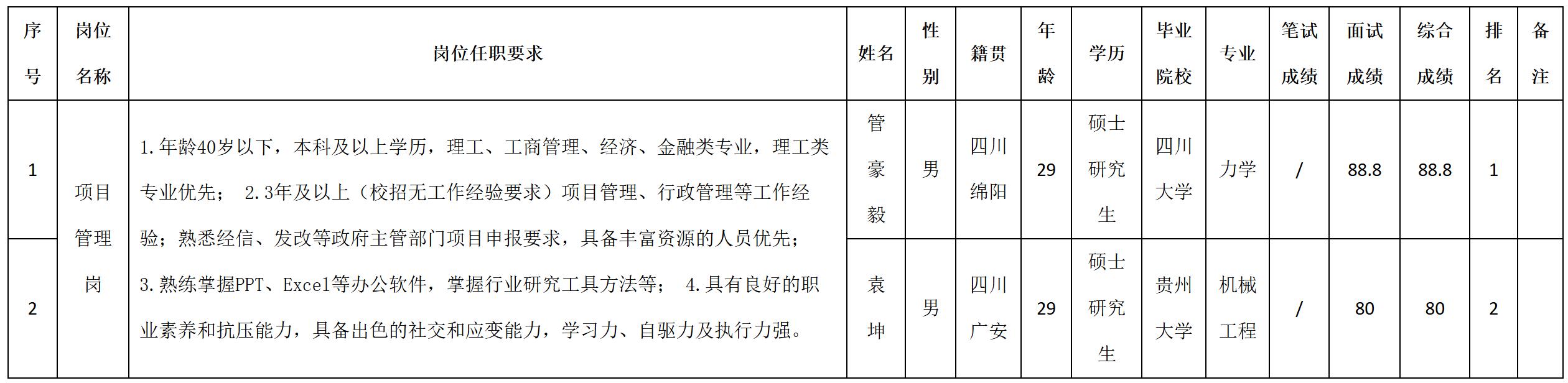 根據(jù)四川九洲投資控股集團有限公司發(fā)布的招聘公告及招聘相關(guān)規(guī)定,經(jīng)筆試、面試等程序,現(xiàn)將筆試(面試)成績予以公示。