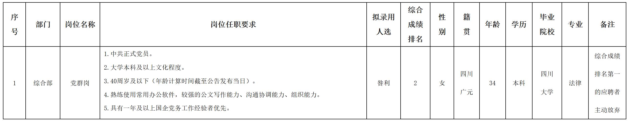 根據(jù)四川越王樓文化傳播有限公司發(fā)布的招聘公告及招聘相關(guān)規(guī)定,經(jīng)筆試、面試、考察、體檢等程序,擬錄用昝利同志到越王樓公司工作,現(xiàn)予以公示,具體情況如下: