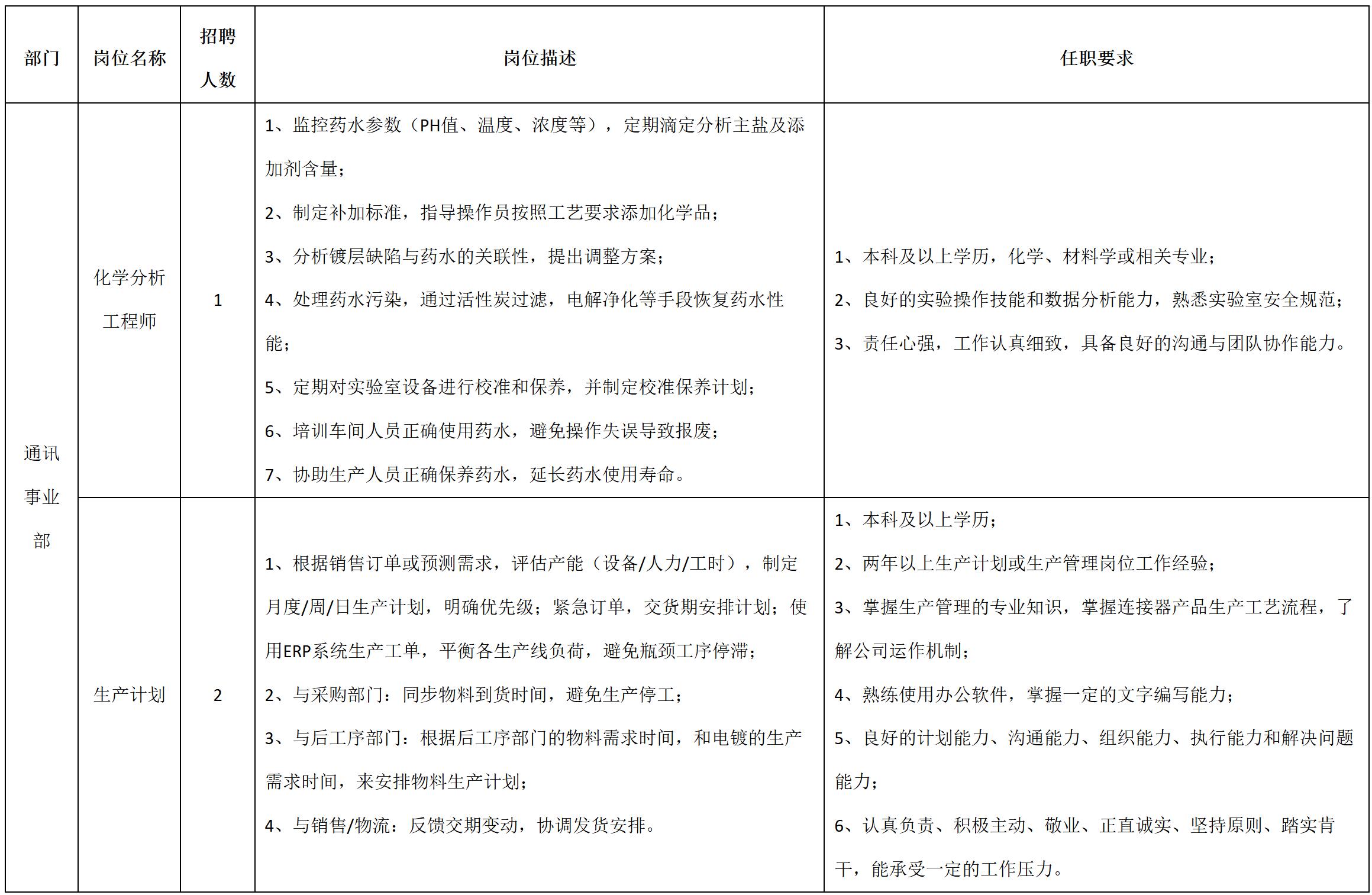 現(xiàn)因公司經(jīng)營發(fā)展需要,現(xiàn)面向長虹控股集團內(nèi)、外部誠聘化學分析工程師等崗位人員,具體崗位招聘信息公告如下: