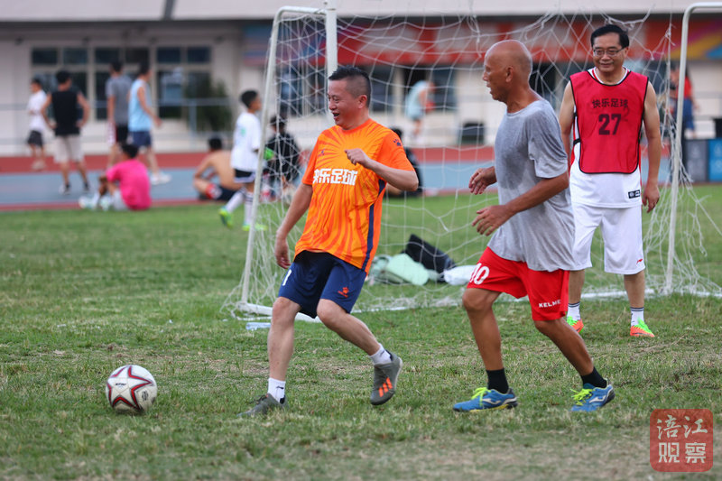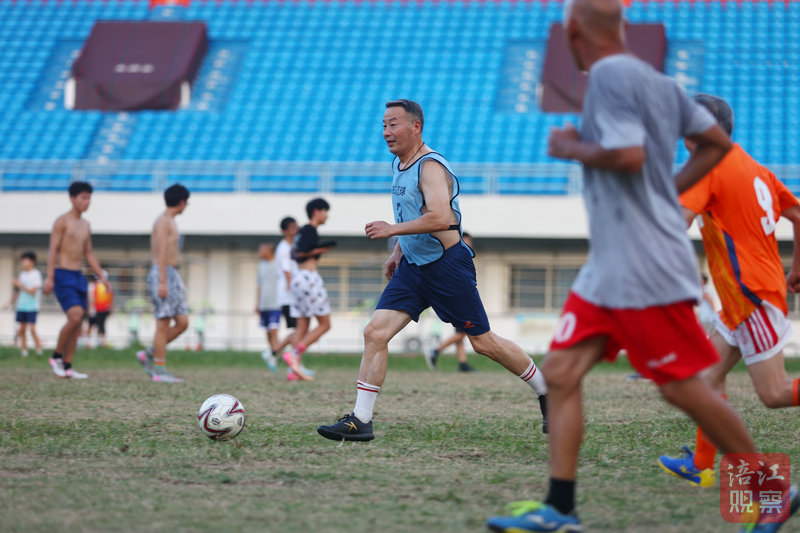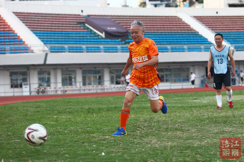78歲的胡順友是全場年齡最大的隊員,他穿著橙色球衣穿梭在場上,雖動作節(jié)奏稍緩,卻始終緊跟攻防節(jié)奏。