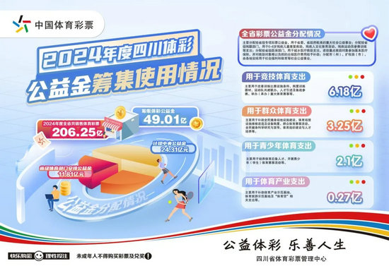 數(shù)據(jù)無言,卻最有力地詮釋著體彩公益的厚重分量。今年6月,四川省體育局發(fā)布了關于2024年度省級體育彩票公益金籌集使用情況的公告。公告指出,2024年度全省共銷售體育彩票206億元,籌集體彩公益金49.01億元,其中計提中央公益金24.31億元。
