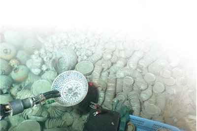 “深海鹽分濃度較高,陶瓷空隙里滿是氯離子,出水后由于溫度和濕度的急劇變化,便會反復結(jié)晶和溶解,所以對于剛出水的文物,當務(wù)之急就是進行清洗和脫鹽。”李劍說。