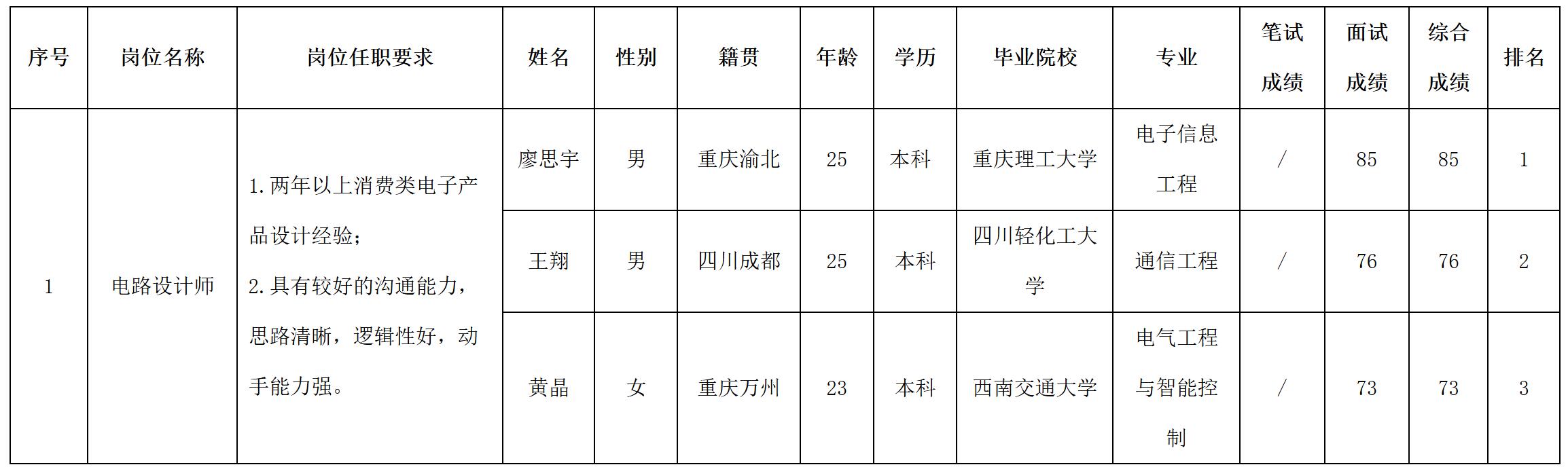 根據(jù)四川長虹新網(wǎng)科技公司發(fā)布的招聘公告及招聘相關(guān)規(guī)定,經(jīng)筆試、面試等程序,現(xiàn)將筆試(面試)成績予以公示。