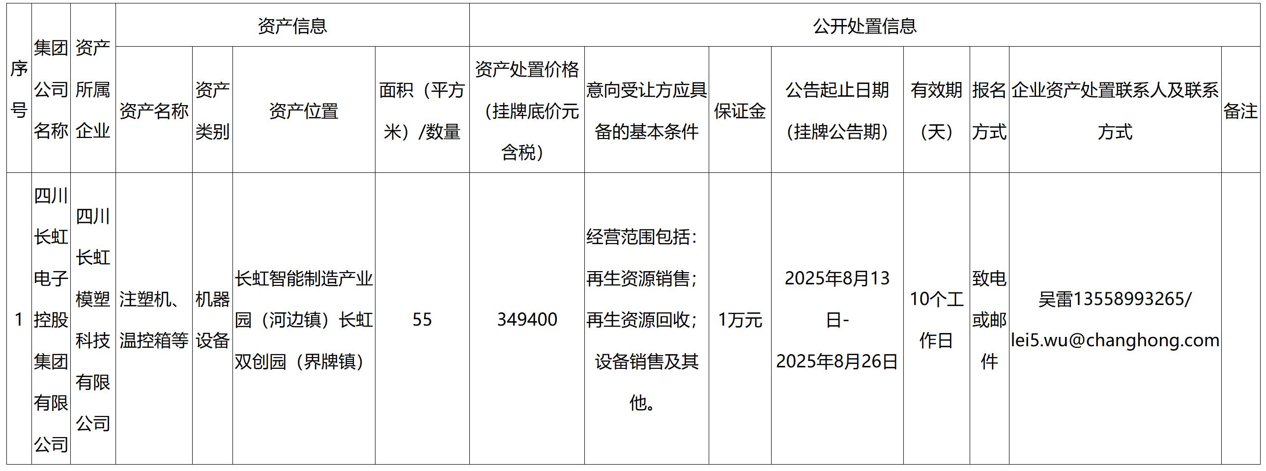 四川長(zhǎng)虹模塑科技有限公司企業(yè)資產(chǎn)處置公告