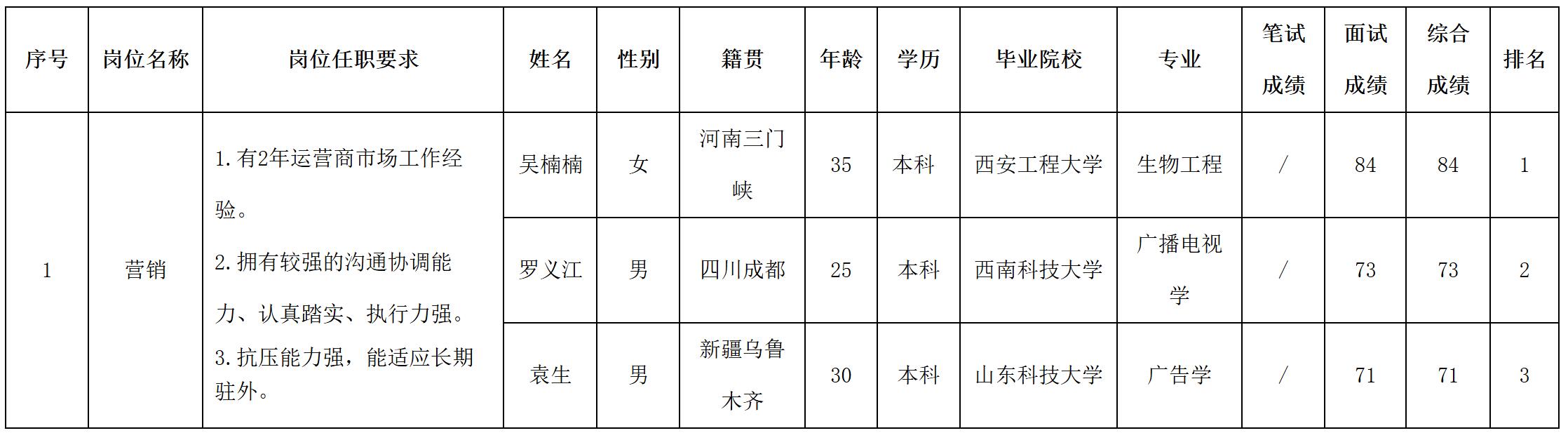 根據(jù)四川長(zhǎng)虹新網(wǎng)科技公司發(fā)布的招聘公告及招聘相關(guān)規(guī)定,經(jīng)筆試、面試等程序,現(xiàn)將筆試(面試)成績(jī)予以公示。