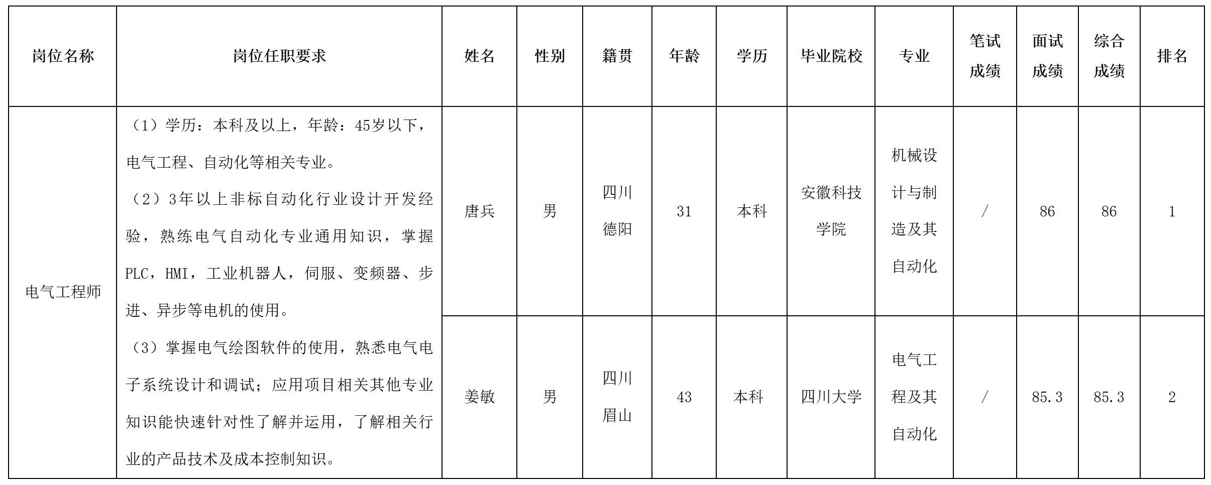 根據(jù)四川長虹智能制造技術有限公司發(fā)布的招聘公告及招聘相關規(guī)定,經(jīng)面試等程序,現(xiàn)將面試成績予以公示。
