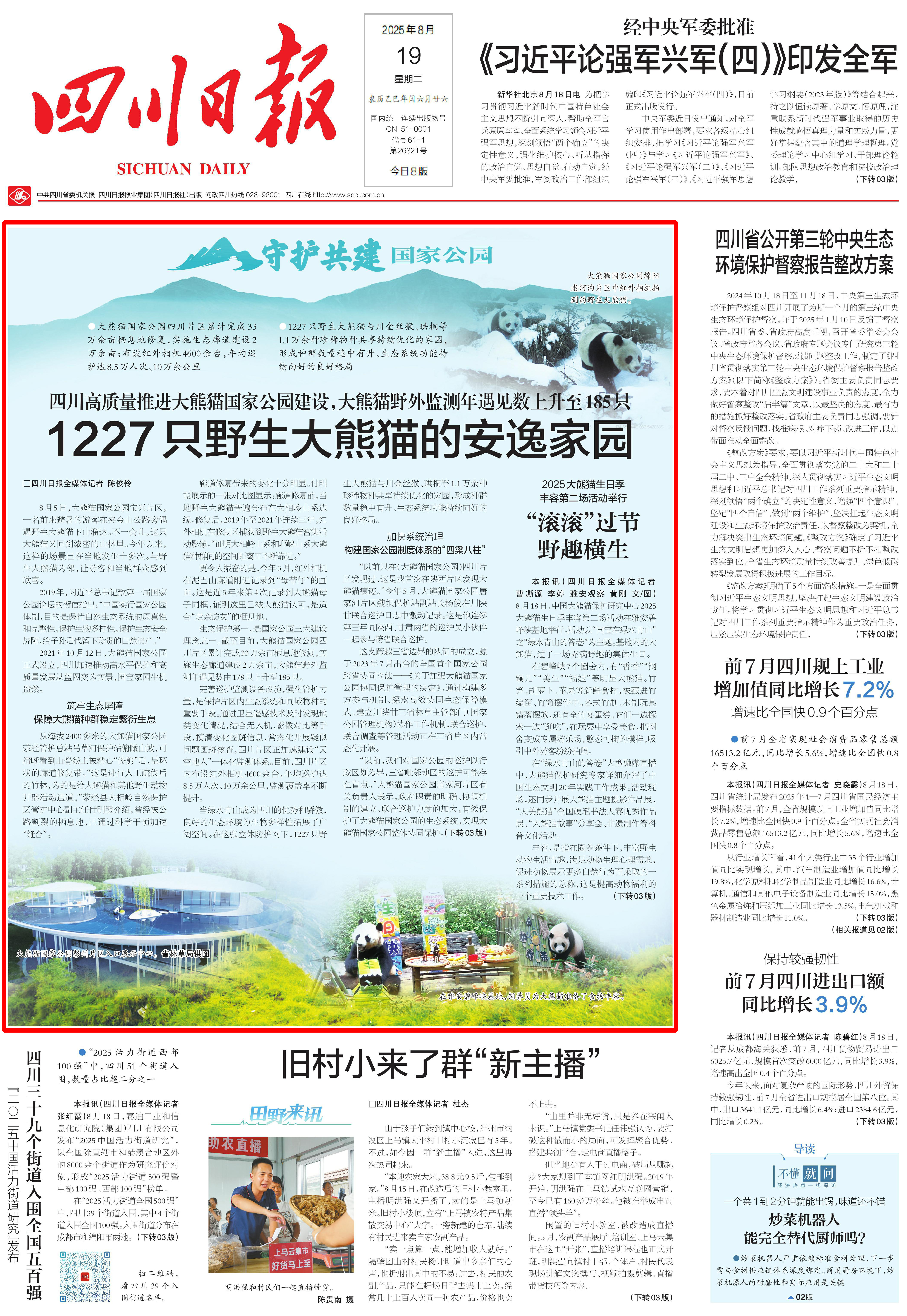 8月19日,《四川日?qǐng)?bào)》頭版頭條刊發(fā)文章《四川高質(zhì)量推進(jìn)大熊貓國(guó)家公園建設(shè),大熊貓野外監(jiān)測(cè)年遇見數(shù)上升至185只 1227只野生大熊貓的安逸家園》,其中特別關(guān)注了大熊貓國(guó)家公園綿陽(yáng)片區(qū),點(diǎn)贊平武縣將蜜蜂當(dāng)作綠水青山化作金山銀山的轉(zhuǎn)化器,生態(tài)保護(hù)與社區(qū)發(fā)展實(shí)現(xiàn)雙贏。