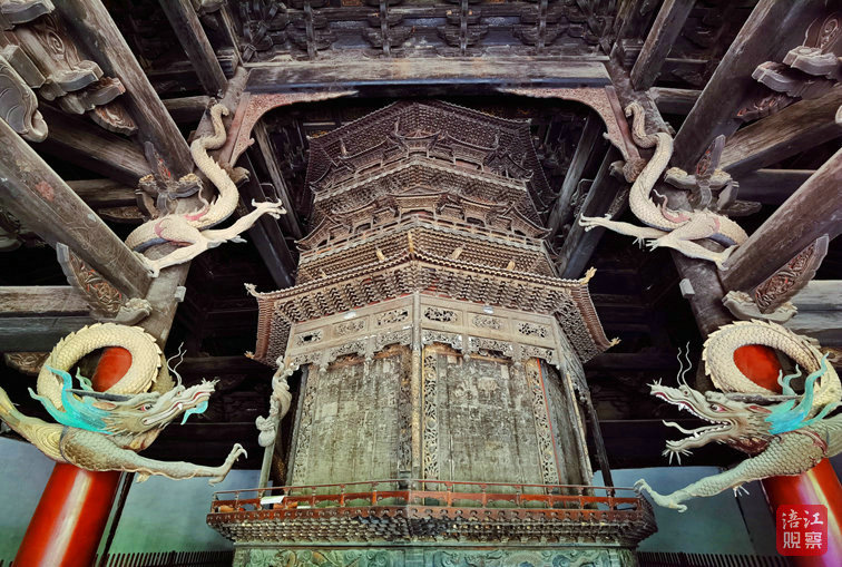 走進被譽為報恩寺“六絕”之一的華嚴殿轉(zhuǎn)輪經(jīng)藏,其底座束腰上雕有八條游龍和波濤,隨著游客轉(zhuǎn)動轉(zhuǎn)輪經(jīng)藏,八條游龍便出沒于波濤之中。