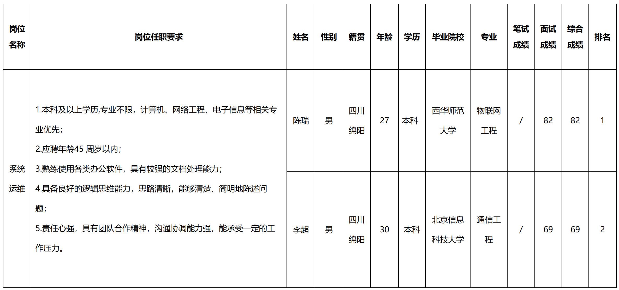 根據(jù)四川虹信軟件股份有限公司發(fā)布的招聘公告及招聘相關(guān)規(guī)定,經(jīng)面試等程序,現(xiàn)將面試成績予以公示。