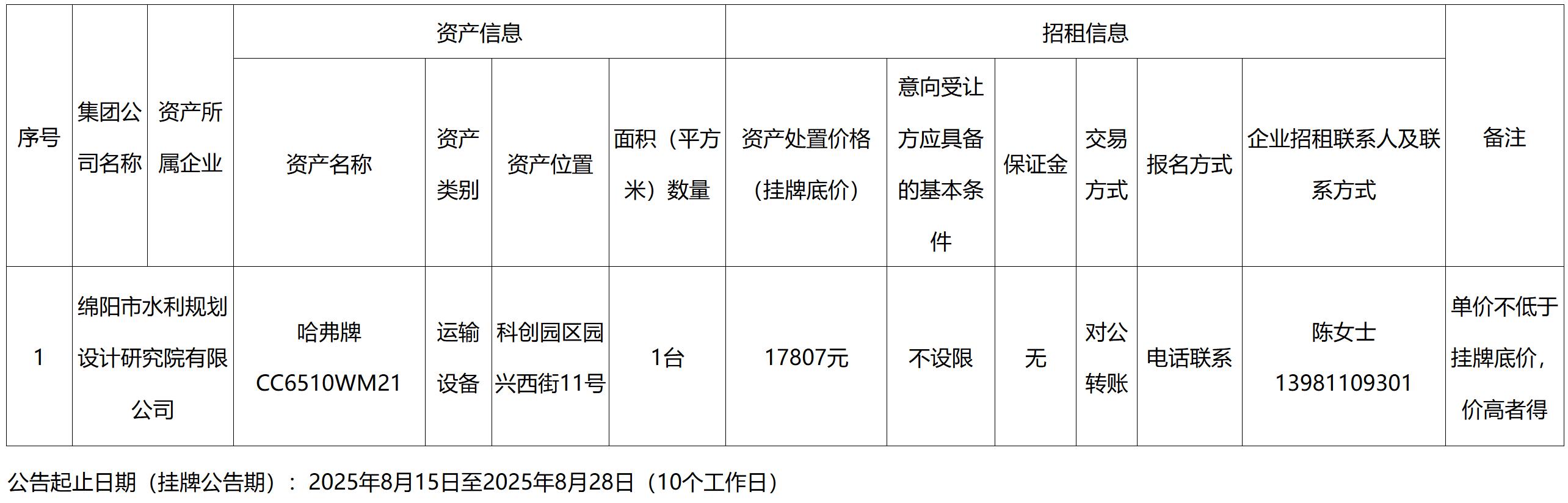 綿陽(yáng)市水利規(guī)劃設(shè)計(jì)研究院有限公司2025年車輛處置項(xiàng)目公告