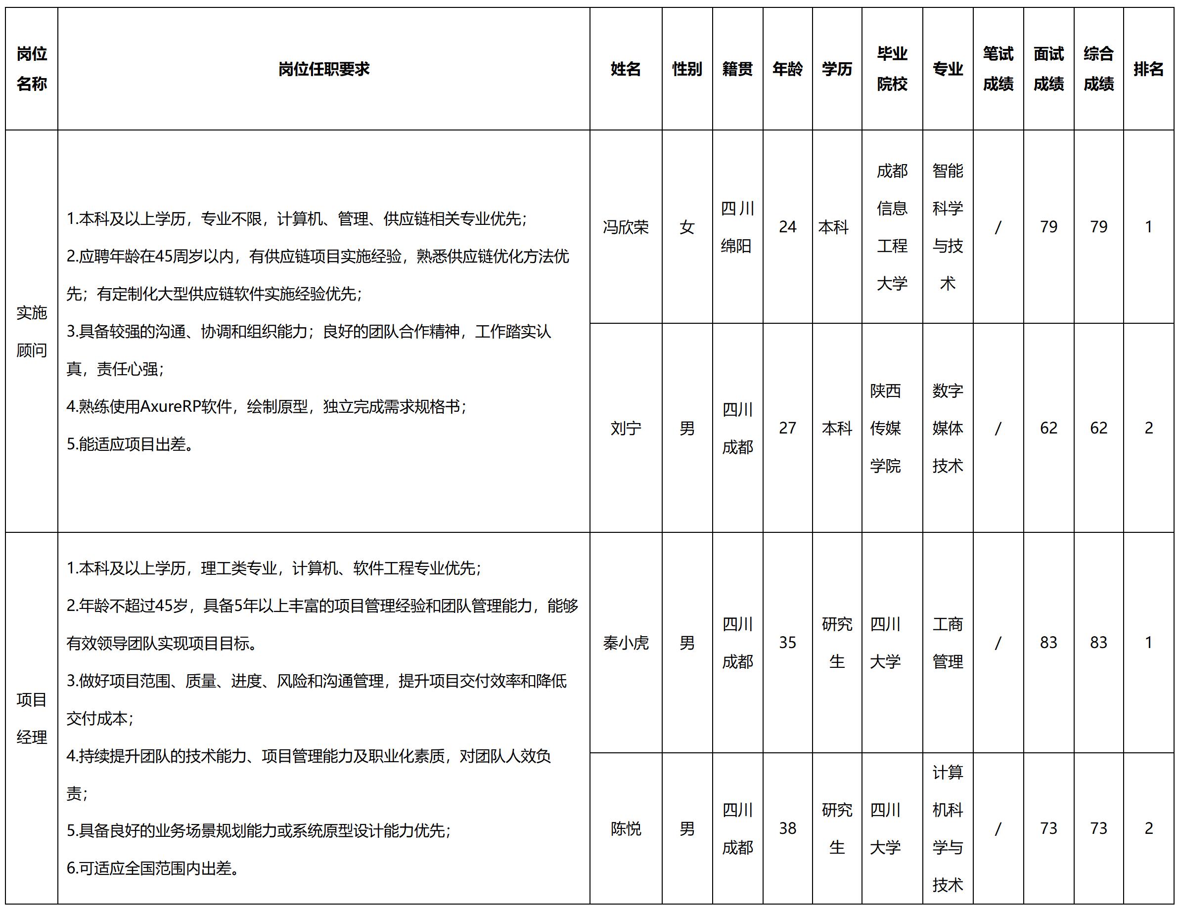 根據(jù)四川虹信軟件股份有限公司發(fā)布的招聘公告及招聘相關(guān)規(guī)定,經(jīng)面試等程序,現(xiàn)將面試成績(jī)予以公示。