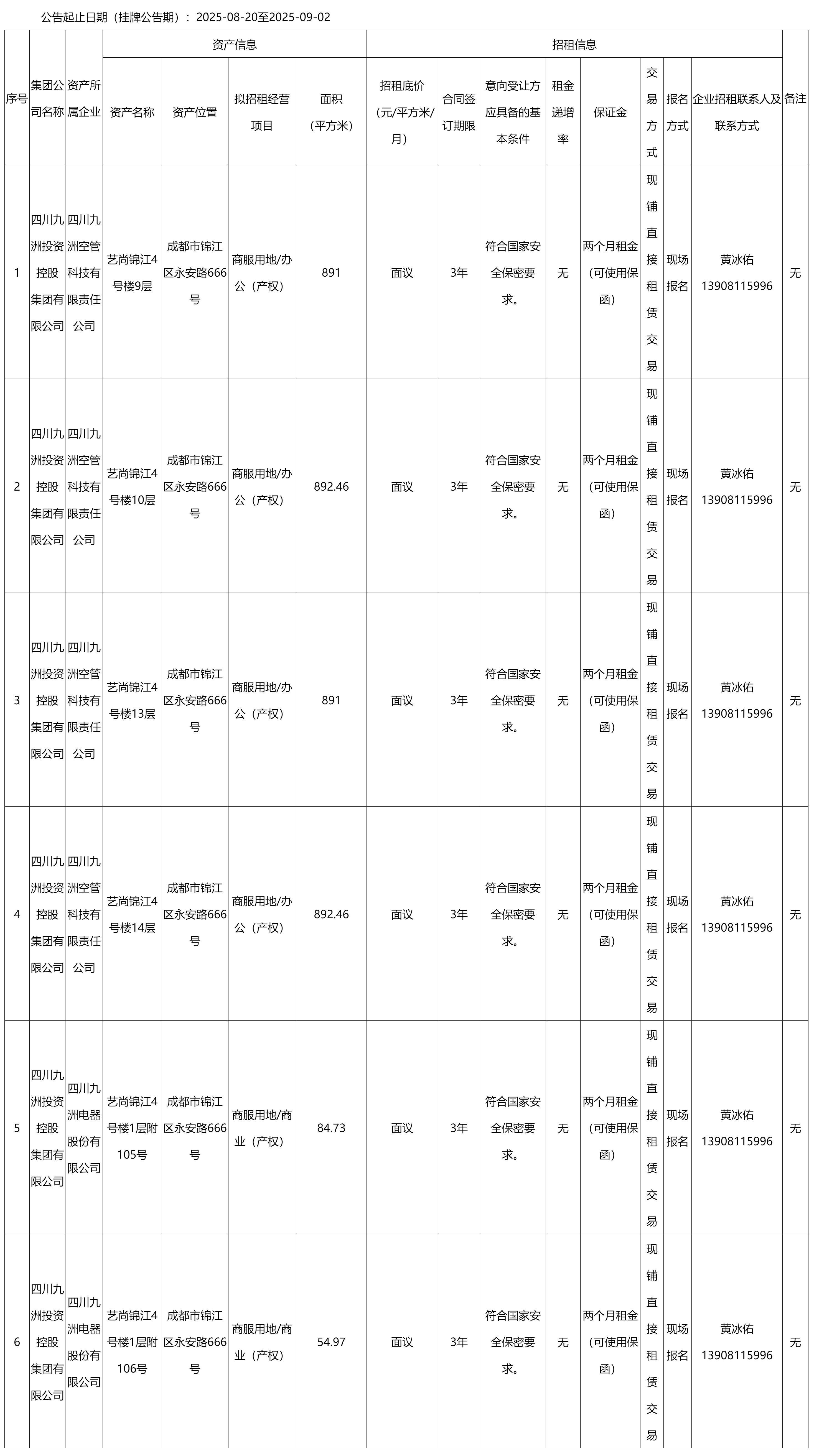 四川九洲千城商業(yè)管理有限公司成都項(xiàng)目(藝尚錦江1F、9F、10F、13F、14F)辦公/商鋪出租公告