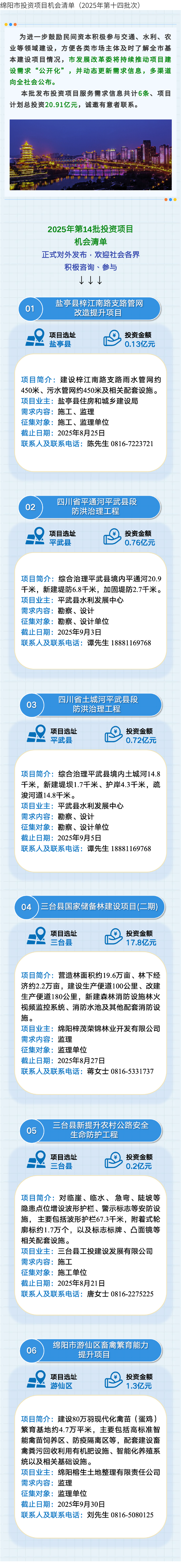 綿陽(yáng)市投資項(xiàng)目機(jī)會(huì)清單(2025年第十四批次)