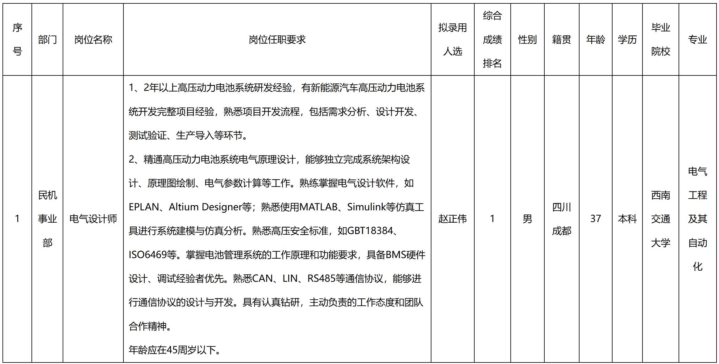 根據(jù)四川長(zhǎng)虹電源股份有限公司發(fā)布的招聘公告及招聘相關(guān)規(guī)定,經(jīng)面試、考察、體檢等程序,擬錄用趙正偉同志到我司工作,現(xiàn)予以公示,具體情況如下:
