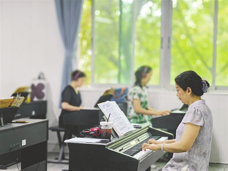 市民在綿陽(yáng)市文化館學(xué)習(xí)樂器演奏