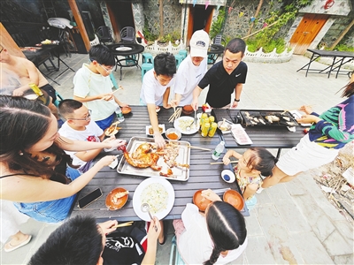 除了驚險(xiǎn)刺激的漂流,開坪鄉(xiāng)更讓文化成為留住游客的法寶。鄉(xiāng)里組織非遺傳承人常態(tài)化開展沙朗教學(xué)、羌繡體驗(yàn)等互動(dòng)活動(dòng),改造提升羌族特色民宿,推出“咂酒迎賓”“篝火晚會(huì)”等特色文化項(xiàng)目。“光是漂流還不夠,要讓游客白天玩得盡興,晚上體驗(yàn)得深刻。”文旅基地負(fù)責(zé)人介紹。