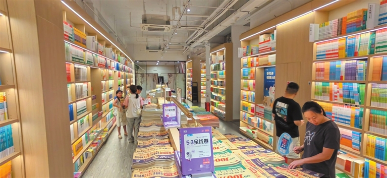 與此同時,新華書店內同樣繁忙。眾多市民涌入尋找適合孩子的學習資料:既有即將升入初三的學生,想利用假期最后幾天提前預習;也有家長陪同低年級孩子挑選讀物,幫助他們更快適應新學期的學習節(jié)奏。