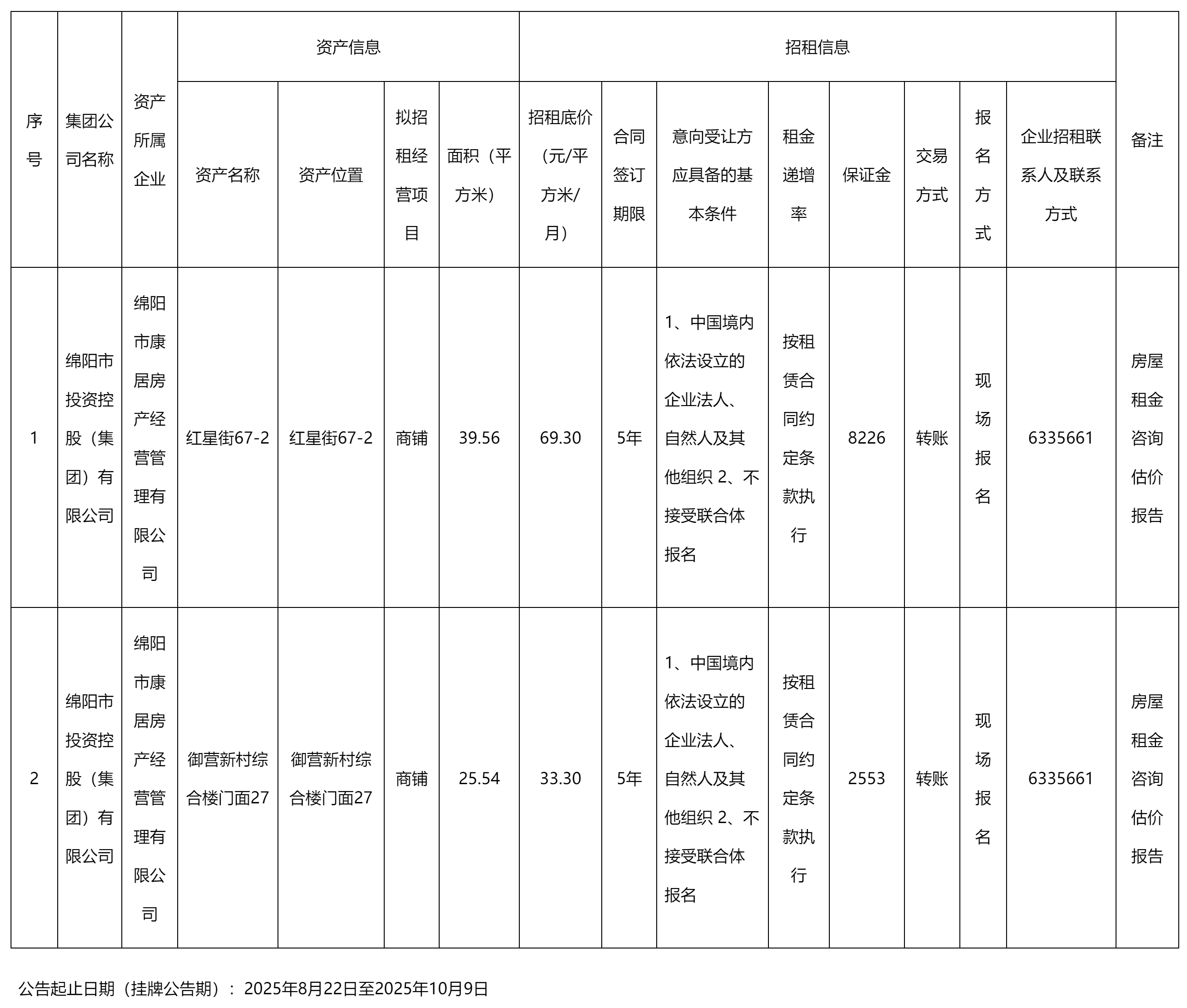 綿陽市康居房產(chǎn)經(jīng)營管理有限公司資產(chǎn)出租公告