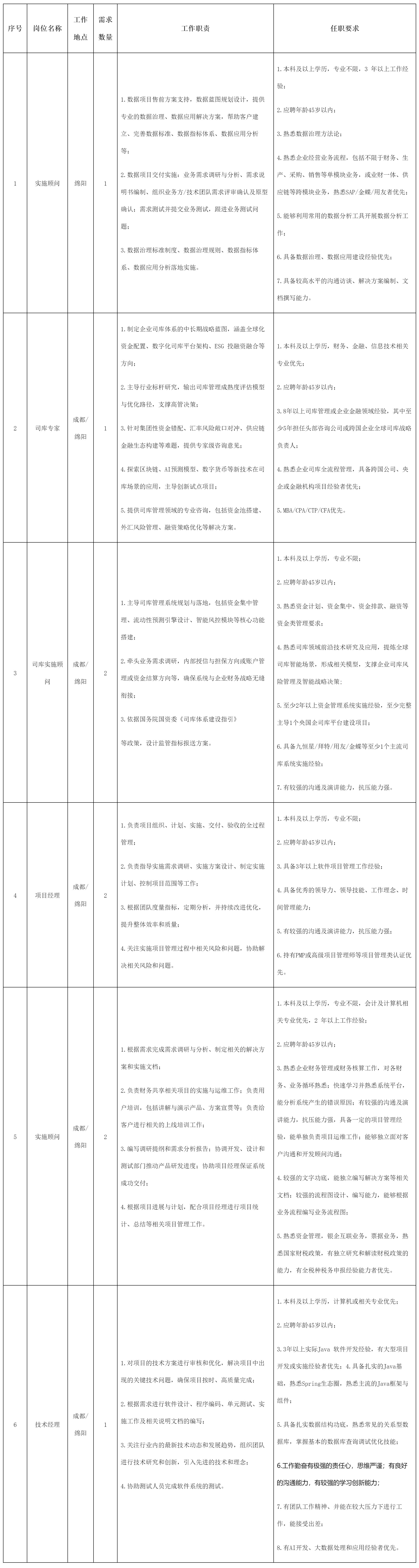 根據(jù)公司經(jīng)營發(fā)展需要,面向社會公開招聘以下崗位: