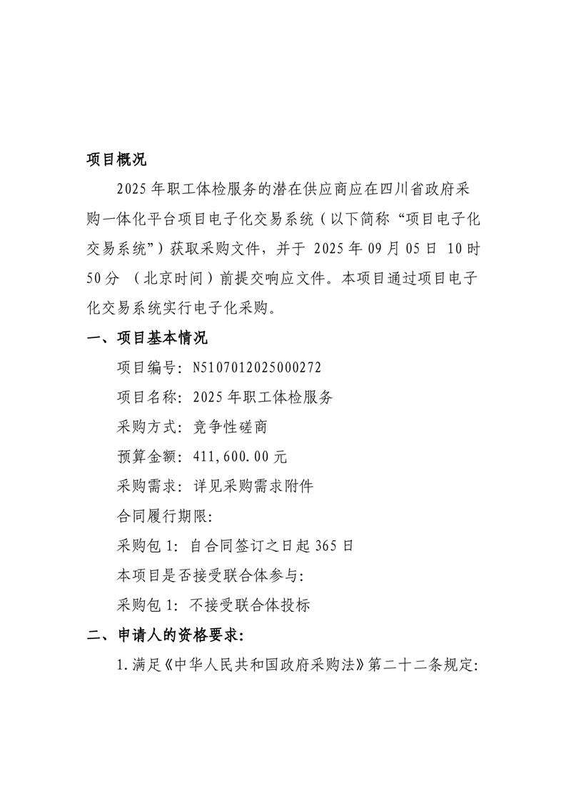 綿陽市發(fā)展和改革委員會2025年職工體檢服務(wù)競爭性磋商公告
