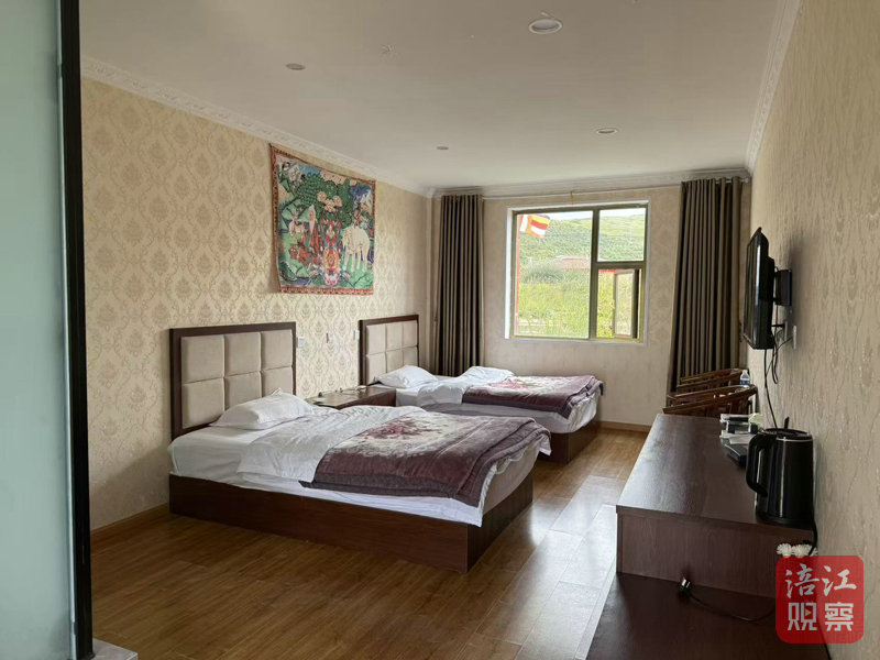 雖說一棟房子只有10個房間,但根據(jù)不同需求設(shè)置了單間、標(biāo)間還有套房。房間裝修將現(xiàn)代和藏區(qū)元素相互融合,看起來十分雅致。