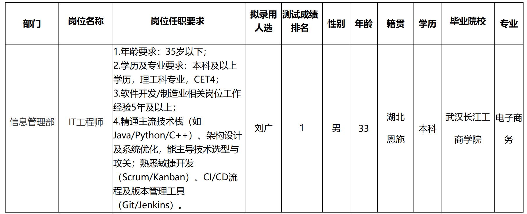 根據(jù)四川啟賽微電子有限公司發(fā)布的招聘公告及招聘相關(guān)規(guī)定,經(jīng)用人單位面試程序,擬錄用劉廣同志到四川啟賽微電子有限公司工作,現(xiàn)予以公示,具體情況如下: