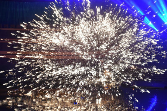浙江省湖州市安吉縣的打鐵花表演。新華社記者 劉澈 攝