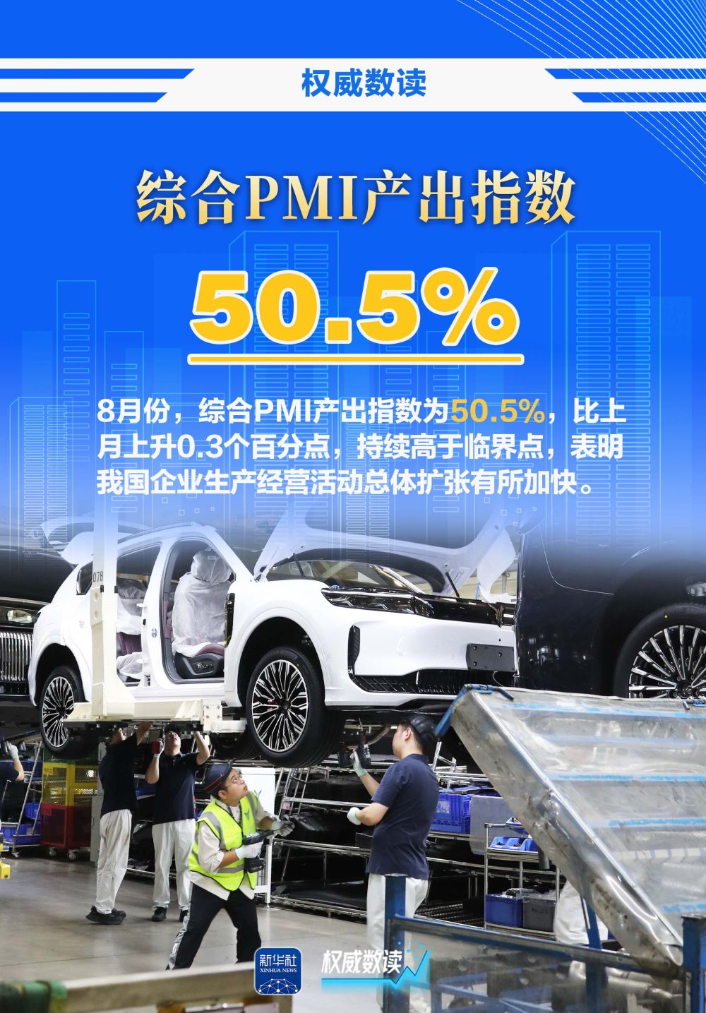 國(guó)家統(tǒng)計(jì)局服務(wù)業(yè)調(diào)查中心、中國(guó)物流與采購(gòu)聯(lián)合會(huì)8月31日發(fā)布的數(shù)據(jù)顯示,8月份,制造業(yè)景氣水平有所改善;非制造業(yè)繼續(xù)保持?jǐn)U張;綜合PMI產(chǎn)出指數(shù)持續(xù)高于臨界點(diǎn),表明我國(guó)企業(yè)生產(chǎn)經(jīng)營(yíng)活動(dòng)總體擴(kuò)張有所加快。