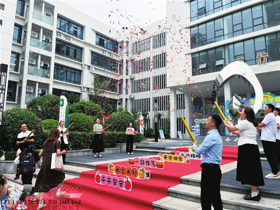 經(jīng)開區(qū)三江實(shí)驗(yàn)學(xué)校的老師們用禮炮迎接入學(xué)的孩子和家長(zhǎng)們