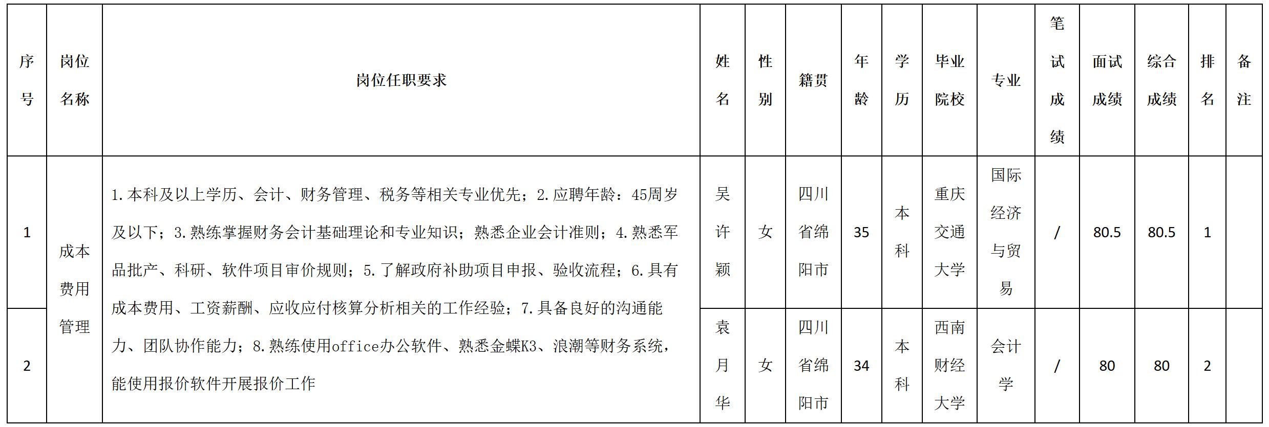 根據(jù)四川九洲防控科技有限責(zé)任公司發(fā)布的招聘公告及招聘相關(guān)規(guī)定,經(jīng)筆試、面試等程序,現(xiàn)將筆試(面試)成績予以公示。