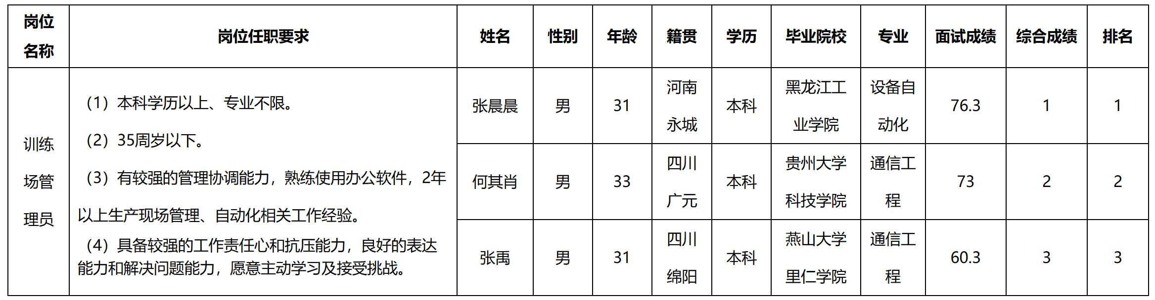 根據(jù)四川長虹虹微科技有限公司發(fā)布的招聘公告及招聘相關規(guī)定,經面試等程序,現(xiàn)將成績予以公示。