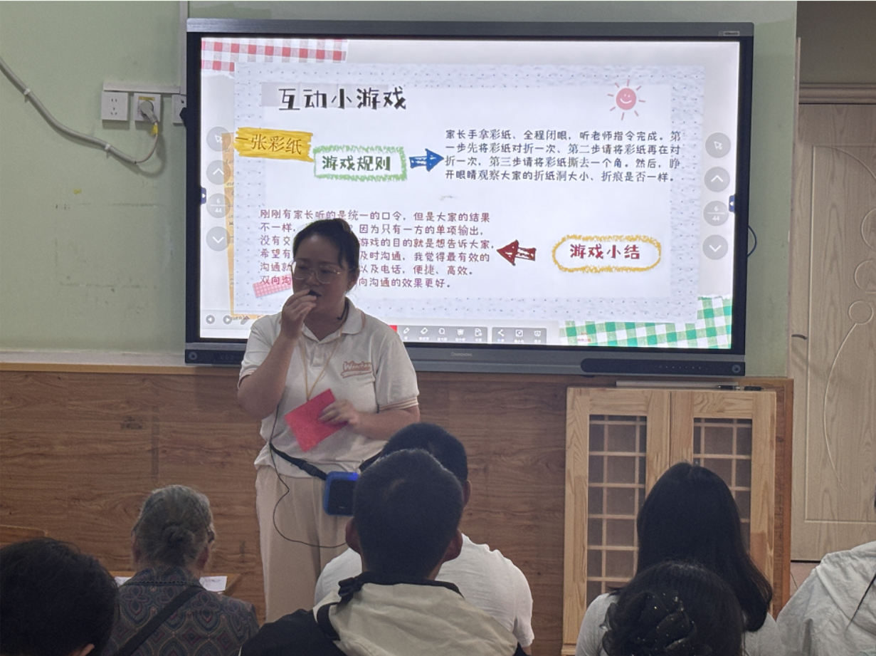 會議伊始,老師們通過精心設計的會前小游戲《你說我做》和《撕紙樂》,迅速拉近了與家長的距離。隨后,老師們詳細講解了各年齡段幼兒的發(fā)展目標,并就本學期的班級情況、教學重點、活動安排、一日生活流程及行為習慣培養(yǎng)等內容,向家長們進行了深入淺出的解讀。結合幼兒的年齡特點,老師們分析了孩子們在園的表現和成長變化,并針對如何幫助幼兒順利適應新學期生活、培養(yǎng)良好的生活及學習習慣等方面,提出了科學的教育建議。