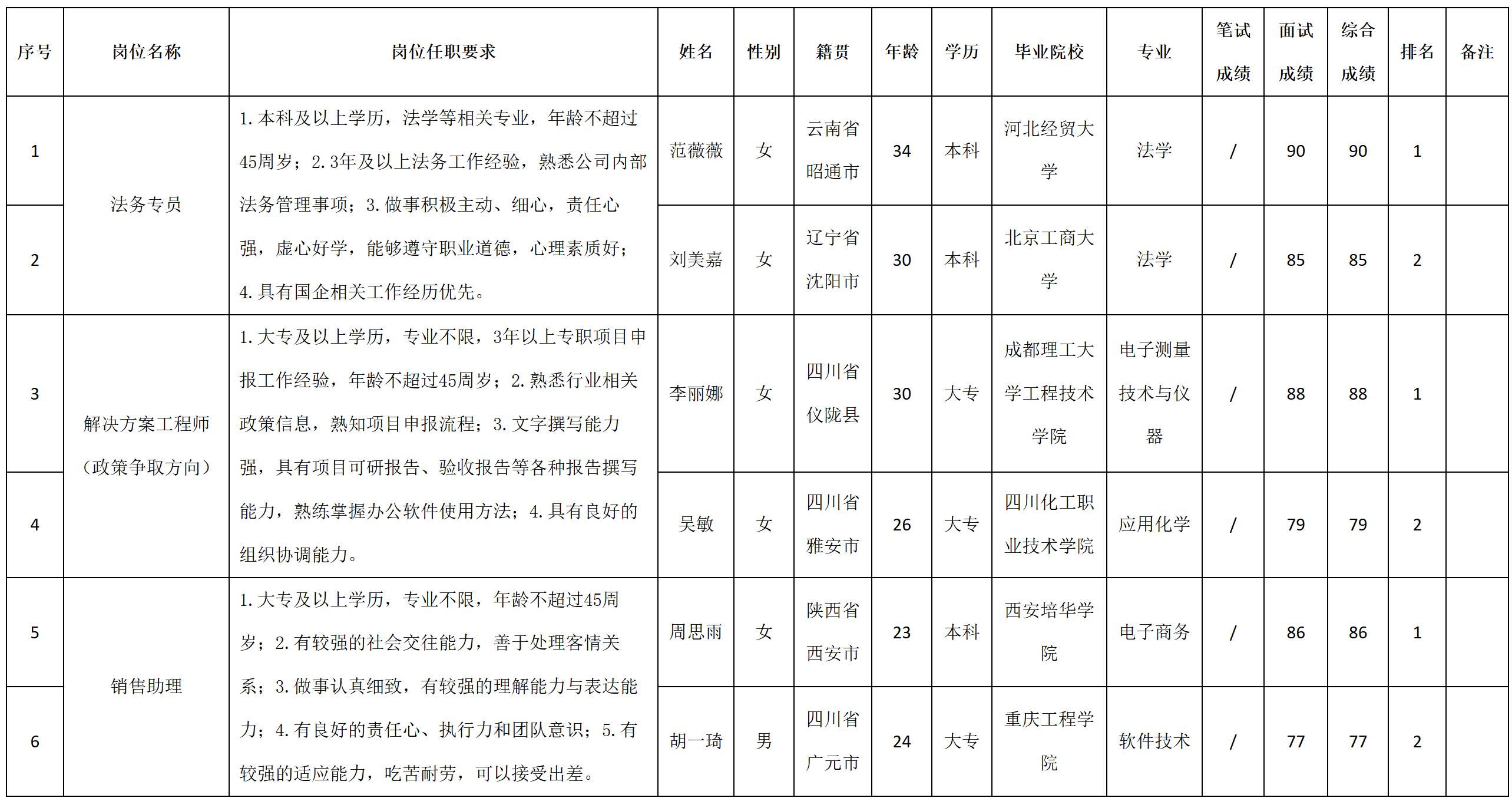 根據(jù)四川科瑞軟件有限責(zé)任公司發(fā)布的招聘公告及招聘相關(guān)規(guī)定,經(jīng)筆試、面試等程序,現(xiàn)將筆試(面試)成績予以公示。