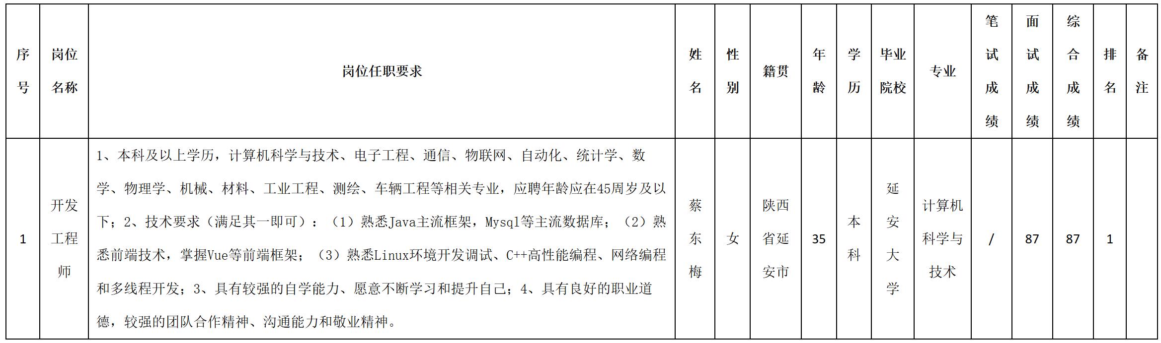 根據(jù)四川九洲投資控股集團(tuán)有限公司軟件與數(shù)據(jù)智能軍團(tuán)發(fā)布的招聘公告及招聘相關(guān)規(guī)定,經(jīng)筆試、面試等程序,現(xiàn)將筆試(面試)成績(jī)予以公示。