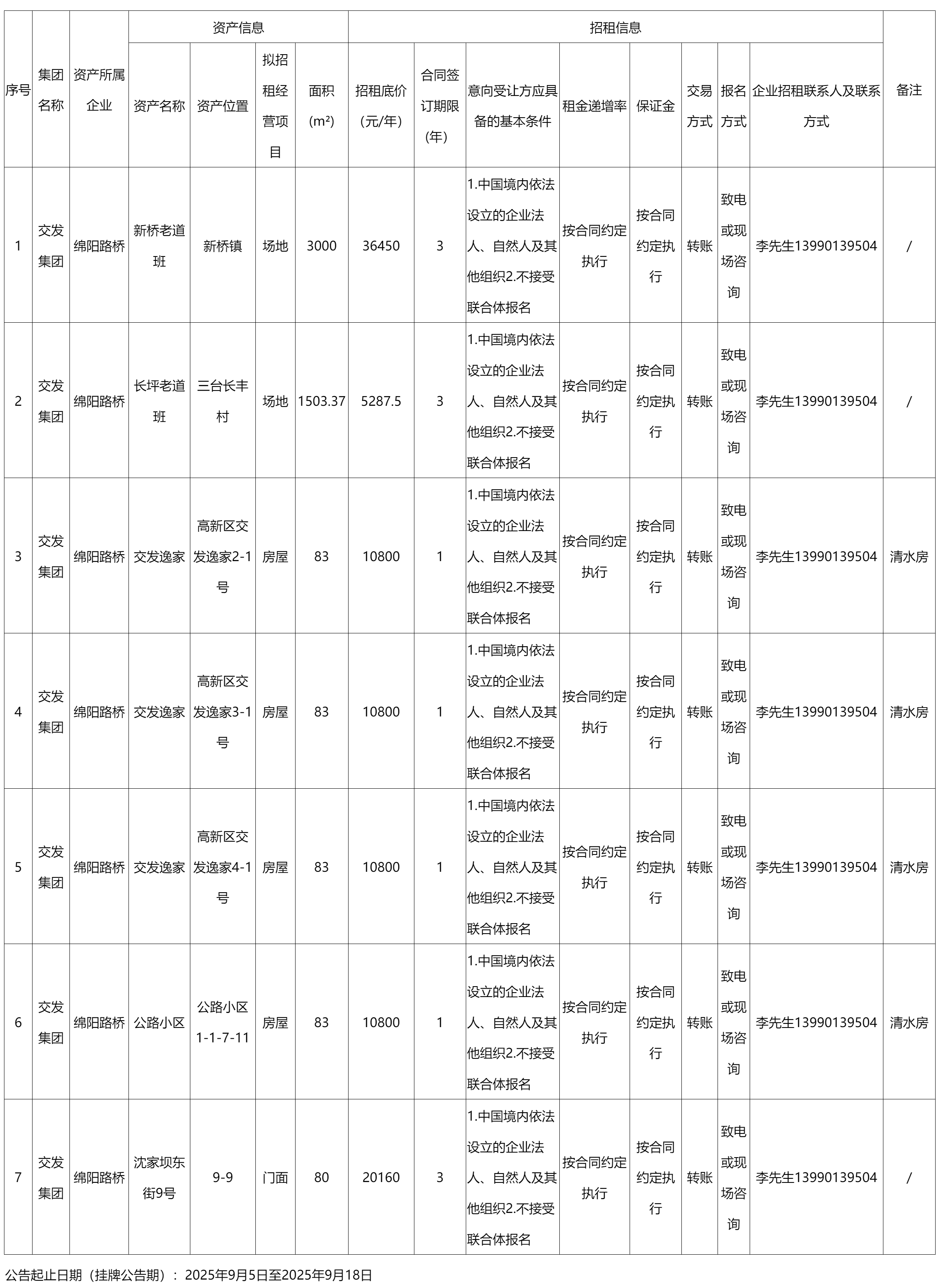 綿陽路橋建設(shè)集團(tuán)有限責(zé)任公司資產(chǎn)招租信息公告