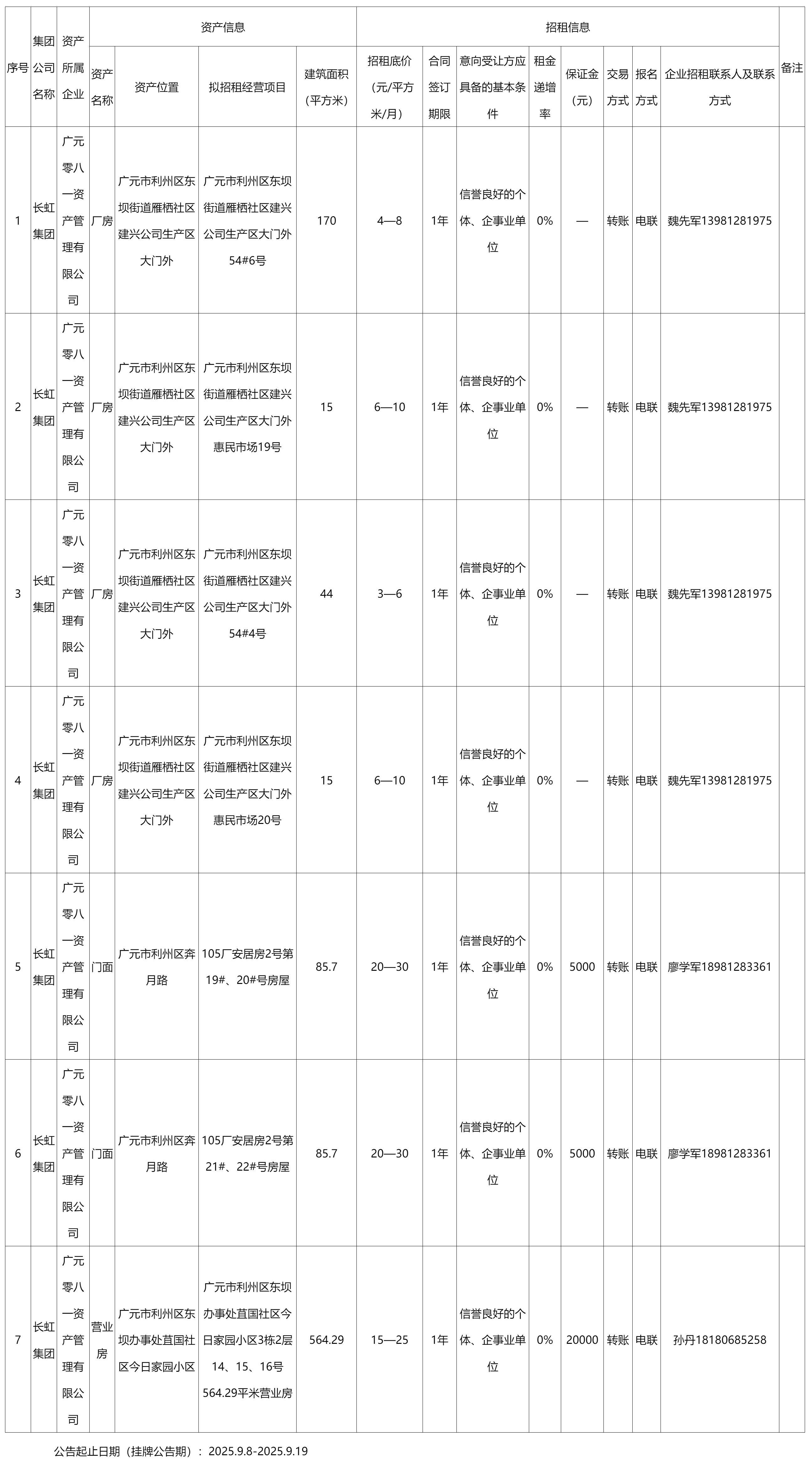 廣元零八一資產(chǎn)管理有限公司資產(chǎn)出租公告