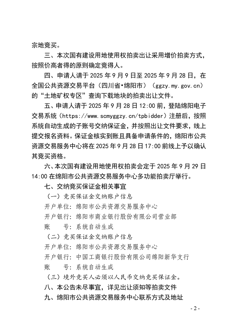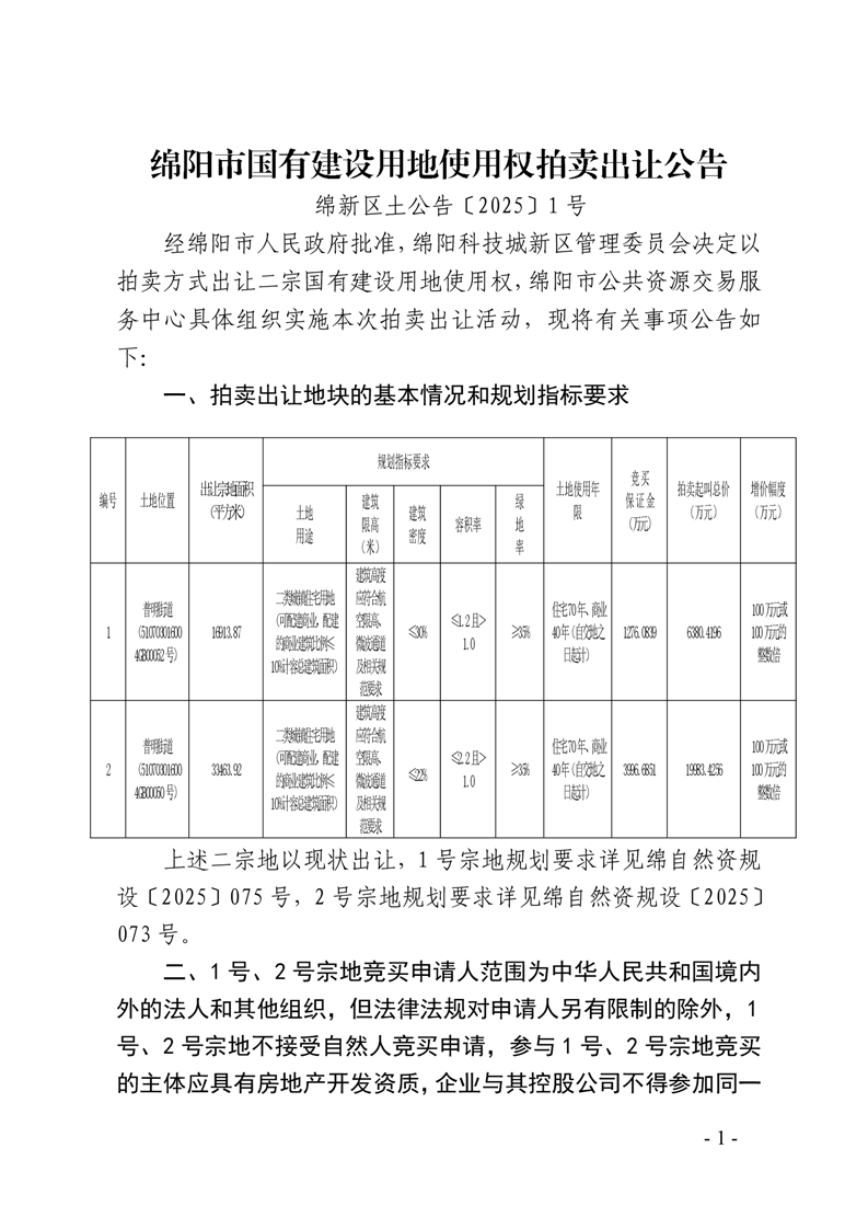 綿陽市國有建設(shè)用地使用權(quán)拍賣出讓公告(綿新區(qū)土公告〔2025〕1號)