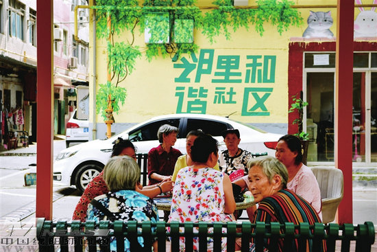 年輕志愿者關(guān)愛老人、大熊貓騎上紅色鯉魚……這些生動有趣的畫面不僅營造出溫馨和諧、活潑生動的社區(qū)氛圍,更在潛移默化中引導(dǎo)居民展現(xiàn)動人的風(fēng)采——“樂觀的你才最美麗”。
