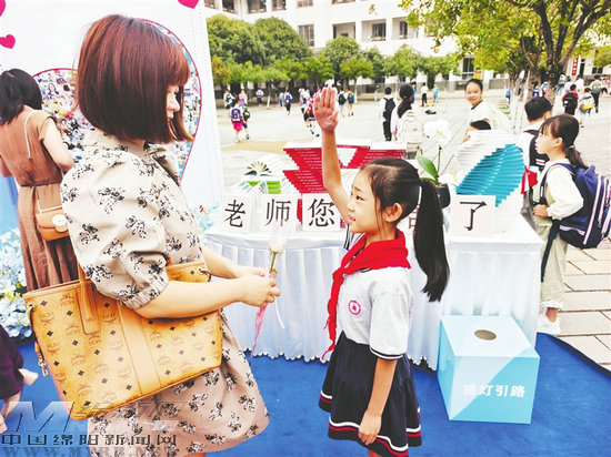 9月10日一早,安州區(qū)七一實(shí)驗(yàn)小學(xué)門口擺滿鮮花,一枝枝象征愛與尊敬的鮮花和書籍禮品送到每位進(jìn)校老師手中。校園內(nèi)還專門設(shè)置“時(shí)光記憶”照片墻,回顧老師們走上教師崗位的點(diǎn)點(diǎn)滴滴。