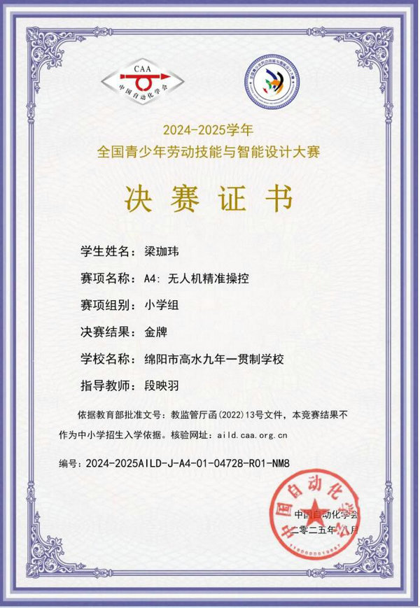 綿陽(yáng)新聞網(wǎng)訊 近日,在2024—2025 學(xué)年全國(guó)青少年勞動(dòng)技能與智能設(shè)計(jì)大賽”中,綿陽(yáng)市高水九年一貫制學(xué)校(城北七中)小學(xué)部梁珈瑋同學(xué)憑借扎實(shí)的勞動(dòng)技能知識(shí)、出色的智能設(shè)計(jì)創(chuàng)意以及沉穩(wěn)的現(xiàn)場(chǎng)發(fā)揮,一路過關(guān)斬將,最終在眾多優(yōu)秀選手中脫穎而出,斬獲金牌。這一優(yōu)異成績(jī)的取得,不僅是梁珈瑋同學(xué)個(gè)人的榮譽(yù),更是該??萍冀逃晒挠辛σ娮C。