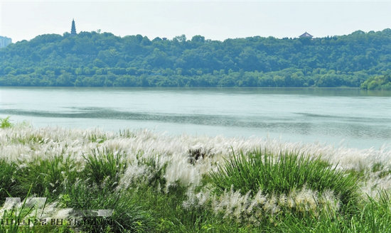 蜿蜒長堤鑄白沙,蘆灘秋老競飛花。