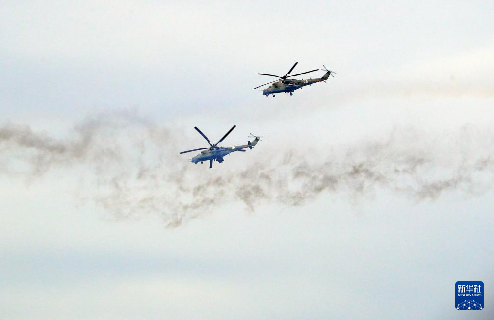 這是9月15日在白俄羅斯明斯克州拍攝的俄白“西部-2025”聯(lián)合戰(zhàn)略演習(xí)現(xiàn)場(chǎng)的直升機(jī)。新華社發(fā)(任科夫攝)