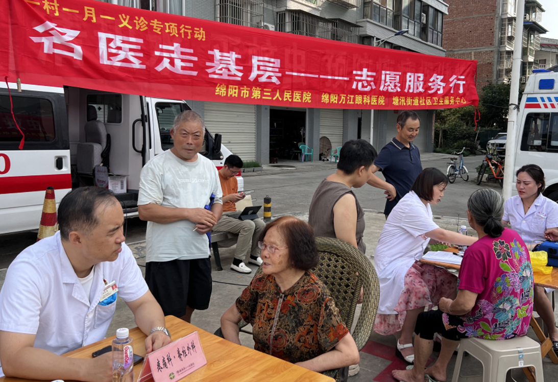 綿陽(yáng)新聞網(wǎng)訊 為確保通過(guò)定期、常態(tài)化的義診服務(wù),切實(shí)解決農(nóng)村群眾“看病難”問(wèn)題,提升基層健康保障水平。9月15日上午,綿陽(yáng)經(jīng)開(kāi)區(qū)塘汛街道社區(qū)衛(wèi)生服務(wù)中心聯(lián)合綿陽(yáng)市第三人民醫(yī)院、綿陽(yáng)市萬(wàn)江眼科醫(yī)院組成的7人義診小隊(duì)走進(jìn)塘汛街道三河社區(qū),開(kāi)展了“一村一月一義診”及“十百千天府健康壩壩講”系列健康知識(shí)傳播活動(dòng)。