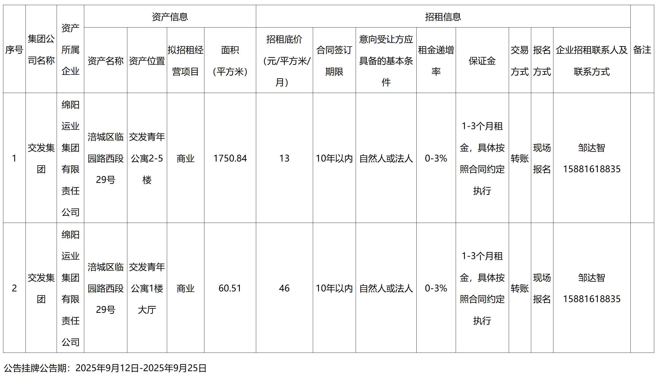 綿陽運(yùn)業(yè)集團(tuán)有限責(zé)任公司經(jīng)營性資產(chǎn)出租公告