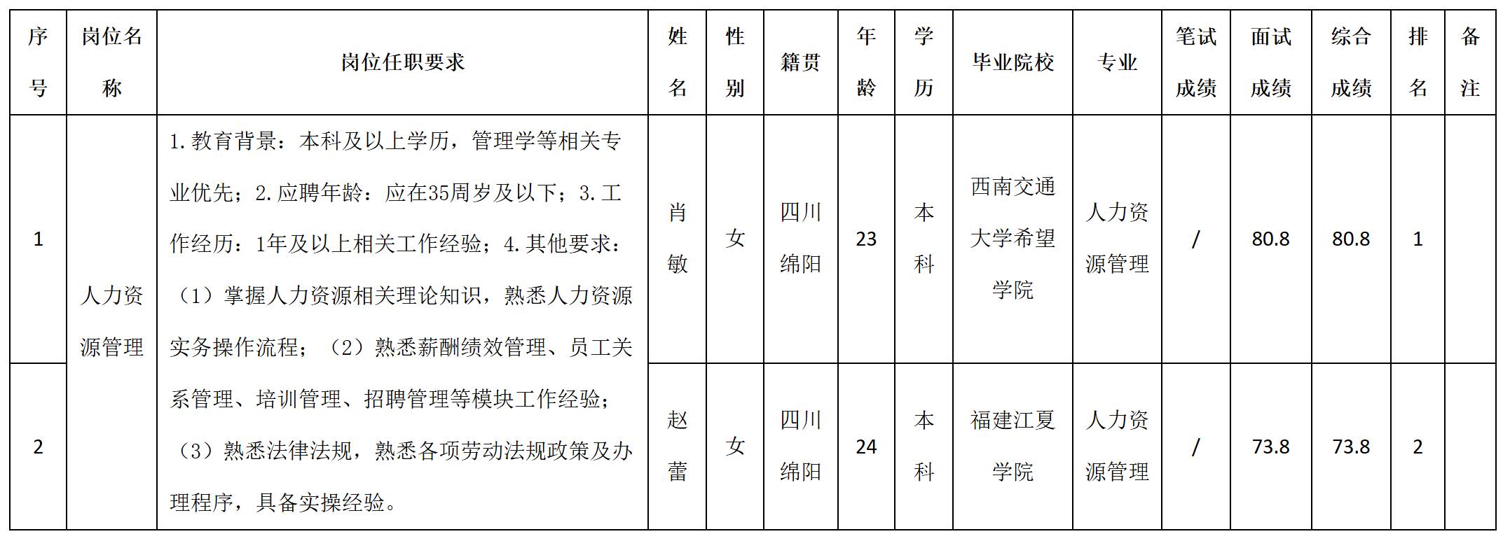 根據(jù)四川九州電子科技股份有限公司發(fā)布的招聘公告及招聘相關(guān)規(guī)定,經(jīng)筆試、面試等程序,現(xiàn)將筆試(面試)成績予以公示。