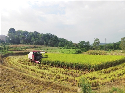 江油市太平鎮(zhèn)大荍村水稻收割現(xiàn)場(chǎng)