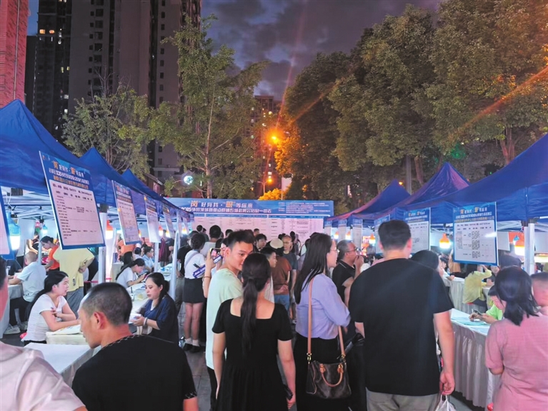 活動現場,政策咨詢區(qū)、企業(yè)展位前熙熙攘攘,求職者手執(zhí)簡歷、細詢崗位,企業(yè)招聘人員耐心解答、廣納良才,政策的暖流、就業(yè)的希望,在夜色中交織涌動。